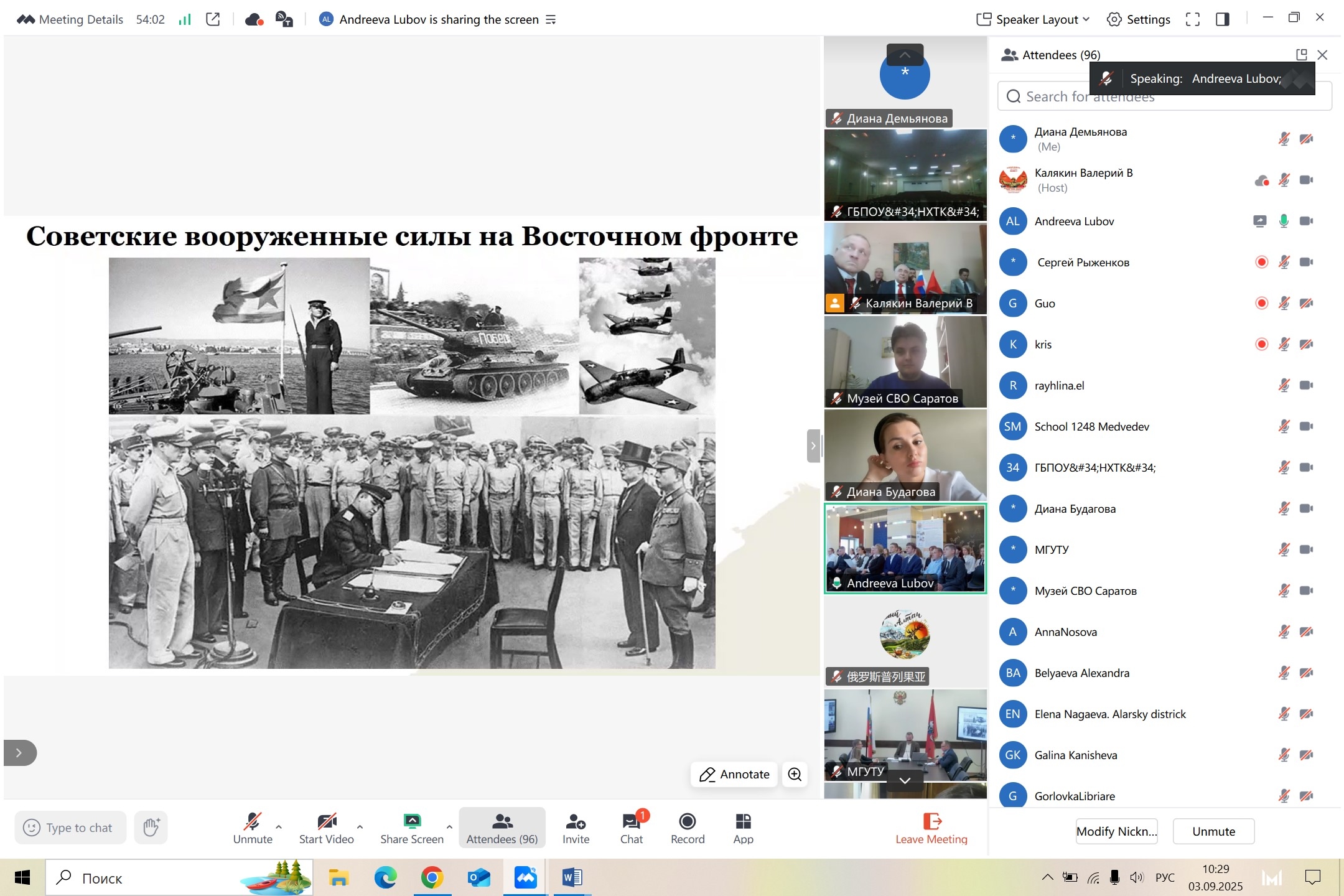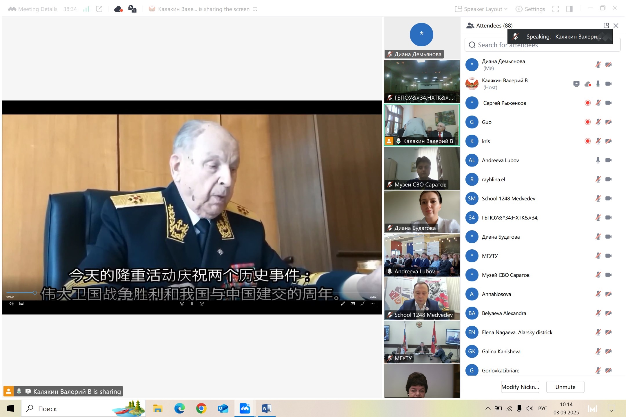 Члены РО РВИО СК приняли участие в научно-практической видеоконференции «Наша общая Победа: День Победы над милитаристской Японией и мировым фашизмом во Второй мировой войне, историческое значение и уроки для современности». В конференции приняли также участие представители государственных, общественных, образовательных организаций России, Беларуси и Китая. В рамках пленарного заседания и панельной дискуссии они обсудили роль СССР и Китая в разгроме Японии, значение американских ядерных бомбардировок Хиросимы и Нагасаки, роль цифровых технологий в патриотическом воспитании молодежи, исторический опыт сотрудничества СССР и КНР, проблемы сохранения исторической памяти и противодействие фальсификации истории.