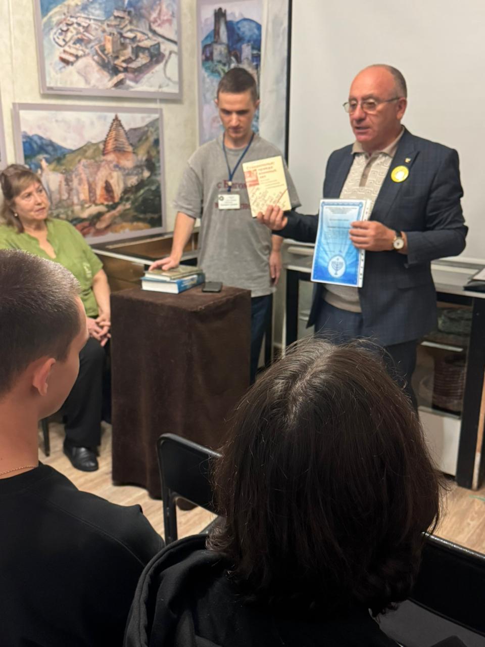 11 сентября 2025 г. на базе Минераловодского краеведческого музея состоялась встреча активистов и председателя Местного отделения Ставропольского регионального отделения Российского военно-исторического общества (РО РВИО СК) в Минераловодском муниципальном округе) М.Б. Акопяна со студентами филиала Ставропольского кооперативного техникума. В рамках мероприятия для молодёжи была проведена экскурсия в дом-музей советского писателя и революционера А.П. Бибика, в ходе которой участники смогли узнать больше о жизни и литературном наследии известного земляка.