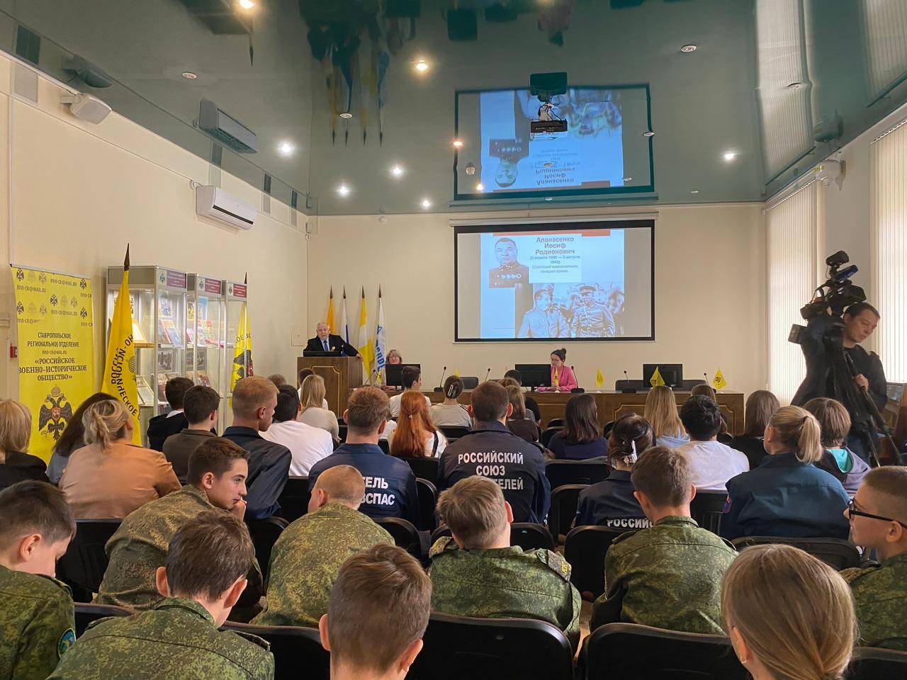 18 сентября 2025 г. в конференц-зале Регионального отделения Российского военно-исторического общества в Ставропольском крае (РО РВИО СК) состоялось заседание интерактивной площадки в рамках медийного проекта «История РФ. Смотрим и обсуждаем вместе». Тема встречи – «Победы русского воинства» – была приурочена к памятным и юбилейным военно-историческим датам сентября 2025 г.