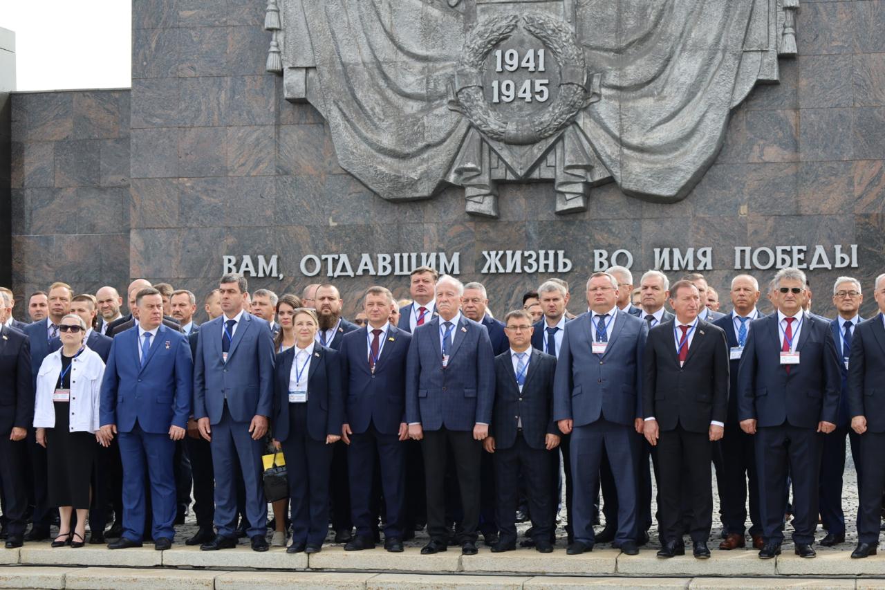 Парламентские делегации регионов-участников также посетили Воинское Мемориальное кладбище, где установлены памятные знаки регионов России, уроженцы которых участвовали в обороне Сталинграда в Великую Отечественную войну. Депутаты Думы Ставропольского края возложили цветы к памятному знаку в честь воинов-ставропольцев, установленному РО РВИО СК в 2021 г. В героической обороне Сталинграда, а затем и в контрнаступлении участвовали свыше 14 тысяч уроженцев Ставрополья, многие из них погибли, защищая город-герой.