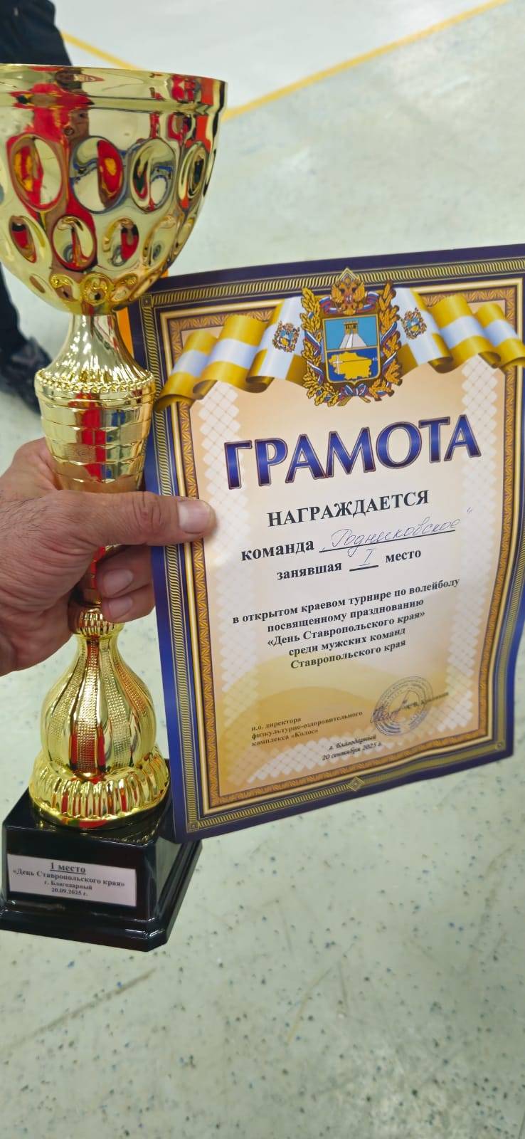 В рамках празднования Дня Ставропольского края в г. Благодарном прошёл краевой открытый турнир по волейболу среди мужских команд. В турнире приняли участие команды из Ставрополя, Пятигорска, Благодарного, Будённовска и с. Родниковского Арзгирского муниципального округа (капитан команды – Гапизов М.Г., член Местного отделения РО РВИО СК в с. Родниковском (председатель – Новак Н.Н.)). По итогам соревнований команда родниковцев заняла почётное I место.