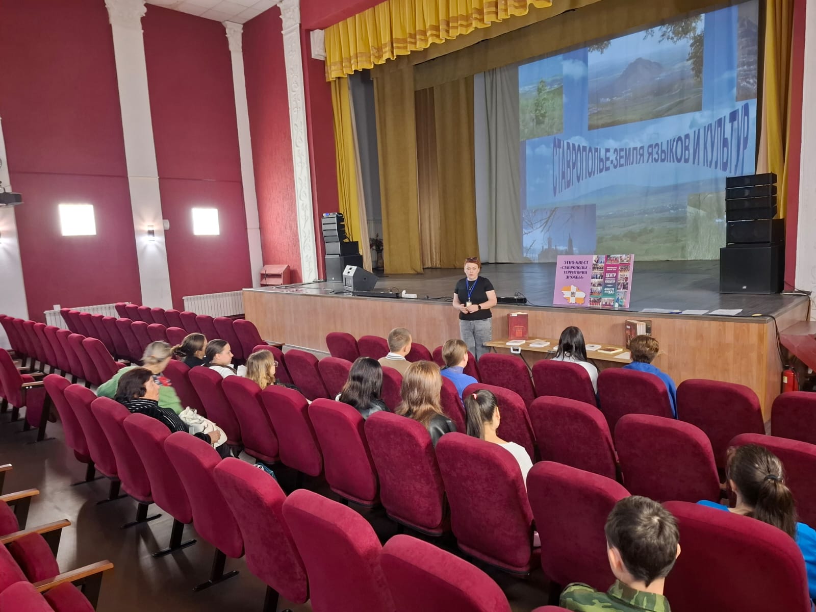 Так, 18 сентября 2025 г. в МБОУ СОШ №1 г. Минеральные Воды ученики 5 класса совершили виртуальное путешествие «Всё о Северном Кавказе: Ставрополье». 19 сентября 2025 г. в Доме культуры и библиотеке с. Нагутского для старшеклассников МКОУ СОШ №6 прошёл этно-квест «Ставрополье – территория дружбы», посвящённый истории и культуре народов, проживающих на территории края, а 20 сентября 2025 г. в Центральной городской библиотеке им. Р.Н. Котовской собрались учащиеся МБОУ СОШ №4 им. Героя России А. Скрябина п. Анджиевский, чтобы отправиться в краеведческое приключение по старым улицам Минеральных Вод. Также сотрудники отдела краеведения, члены РО РВИО СК, приняли участие в акции «Летопись Ставрополья. Герой моего края», подготовив публикации в социальных сетях о минераловодцах – участниках Великой Отечественной войны – Почётном гражданине г. Минеральные Воды А.Т. Алтуниной и Герое Советского Союза, Почётном гражданине г. Минеральные Воды В.И. Минакове.