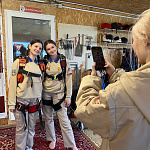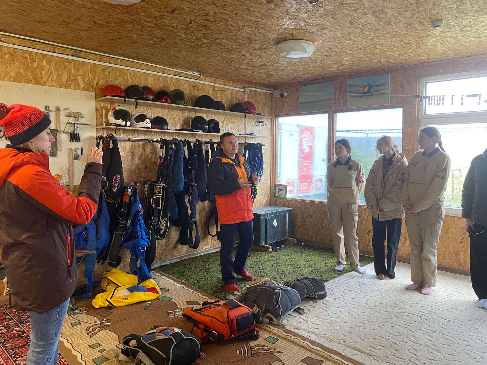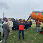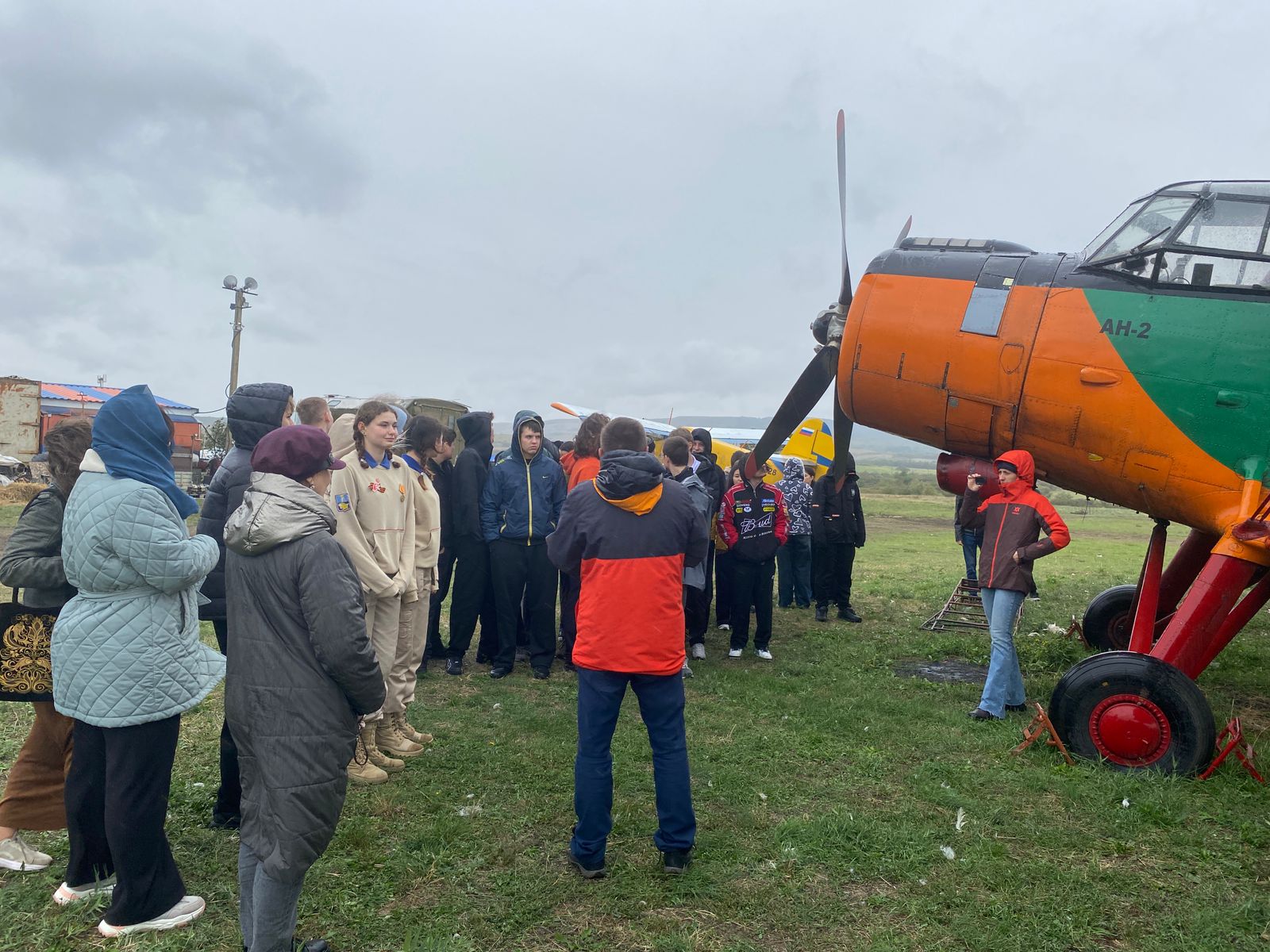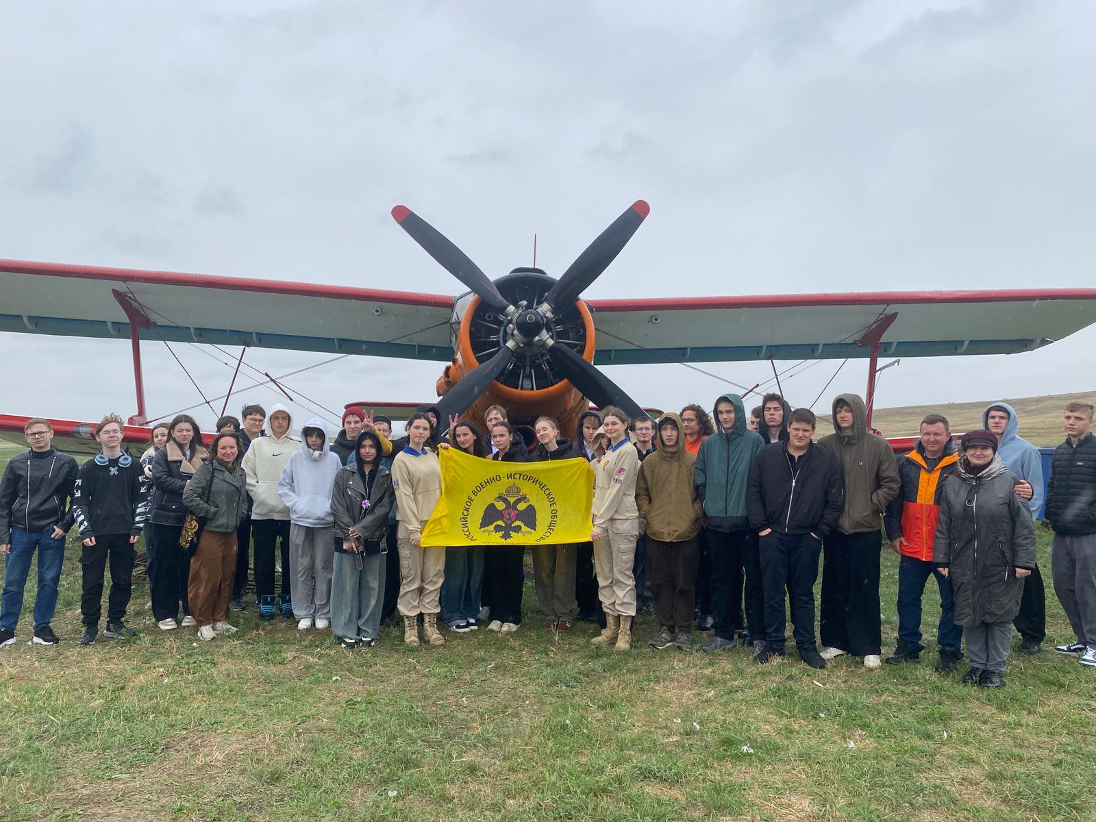 Затем школьники посетили городской железнодорожный вокзал, где экскурсовод рассказал им об истории здания, его устройстве и особенностях, и отправились в х. Верхнеегорлыкский. В процессе поездки экскурсанты познакомились с различными объектами, раскрывающим историю развития инфраструктуры региона. По прибытии к месту назначения ребята смогли увидеть разрушенный Новокавказский мост, который раньше был частью Армавир-Туапсинской железной дороги, и посетить аэродром Авиационного спортивного клуба Ставропольского края. Руководитель клуба Кожевников И.В., член РО РВИО СК, провёл для гостей экскурсию по аэродрому, познакомил их с историей развития советской авиации и парашютного спорта, рассказа об устройстве самолёта АН-2. Дети смогли не только посидеть самолёте, но и примерить на себя парашютную систему.