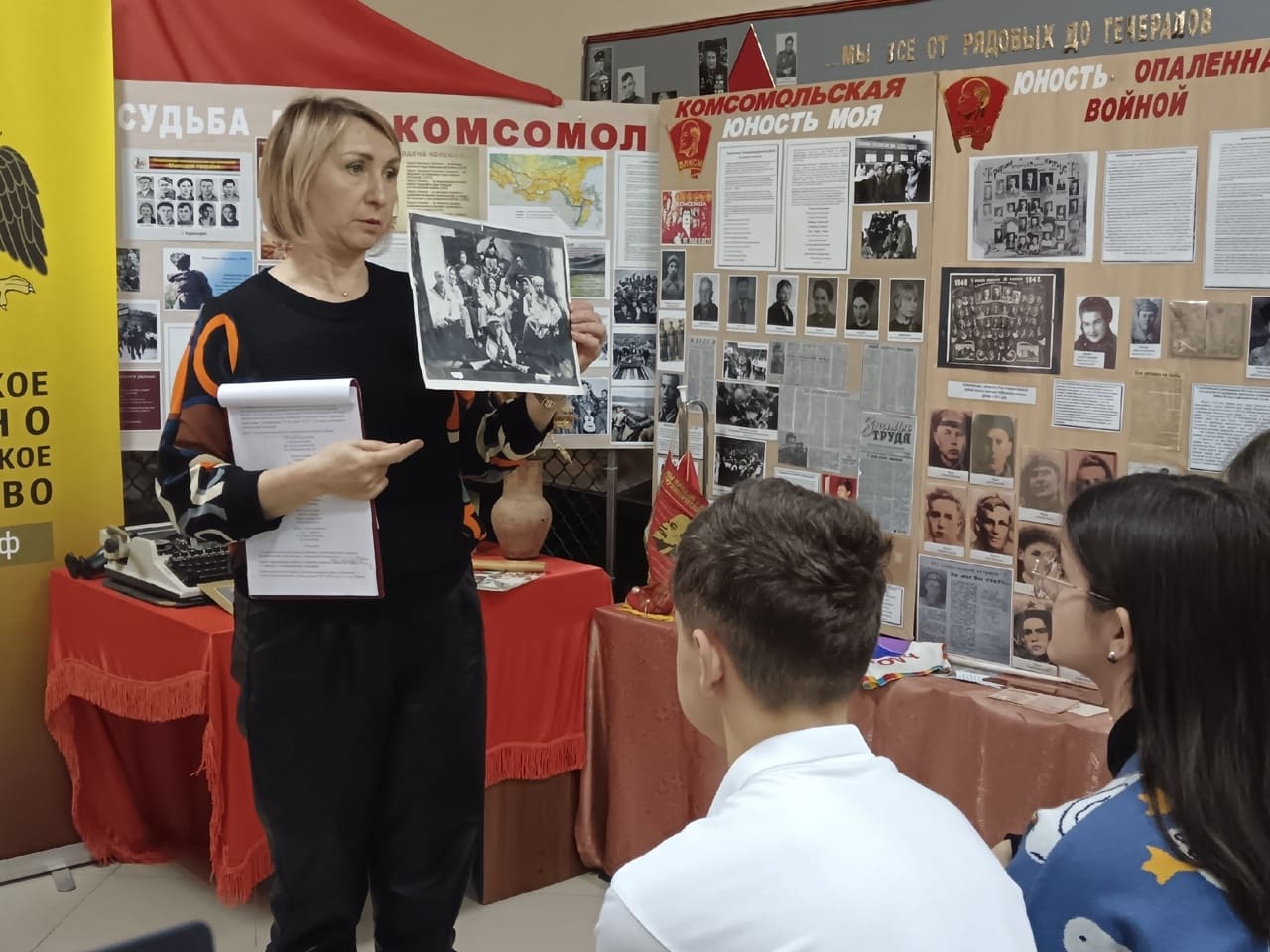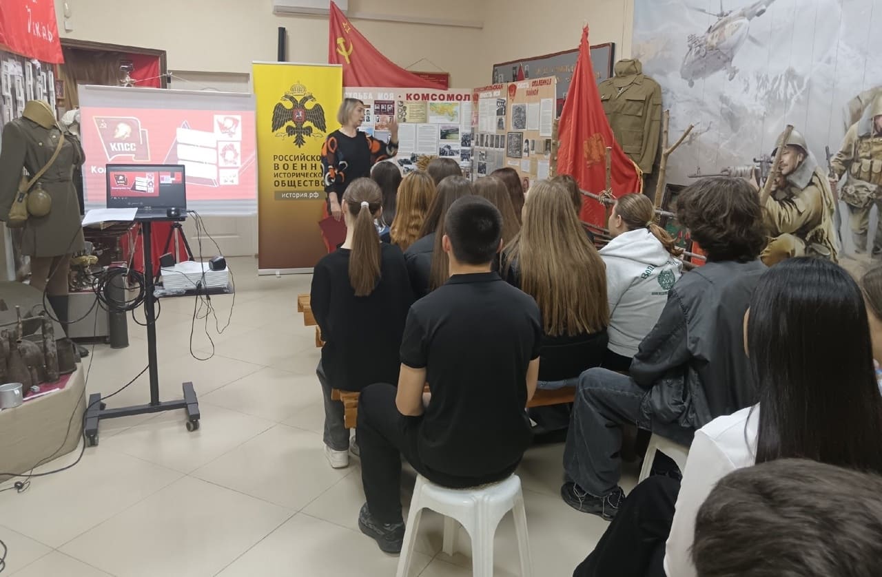 30 октября 2025 года сотрудники Новоалександровского районного историко-краеведческого музея, члены РО РВИО СК Герасимова М.Ф. и Скрипникова Л.А. организовали мероприятие «Наши земляки – новоалександровцы на фронтах Великой Отечественной войны и участники боевых действий». Школьники познакомились с историей ВЛКСМ, узнали о выдающихся представителях организации. Особое внимание было уделено участию земляков-комсомольцев в Великой Отечественной войне, Афганской войне и локальных конфликтах. В рамках мероприятия учащиеся смогли ознакомиться с музейной выставкой «Это юность моя – комсомол!», на которой представлены фотографии и личные вещи комсомольцев разных лет.