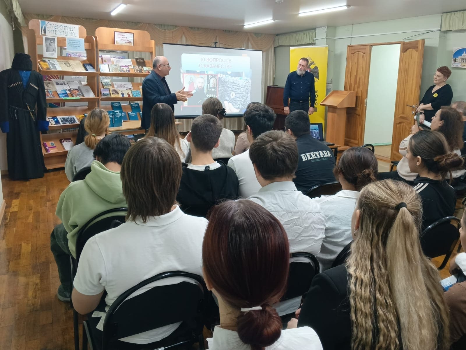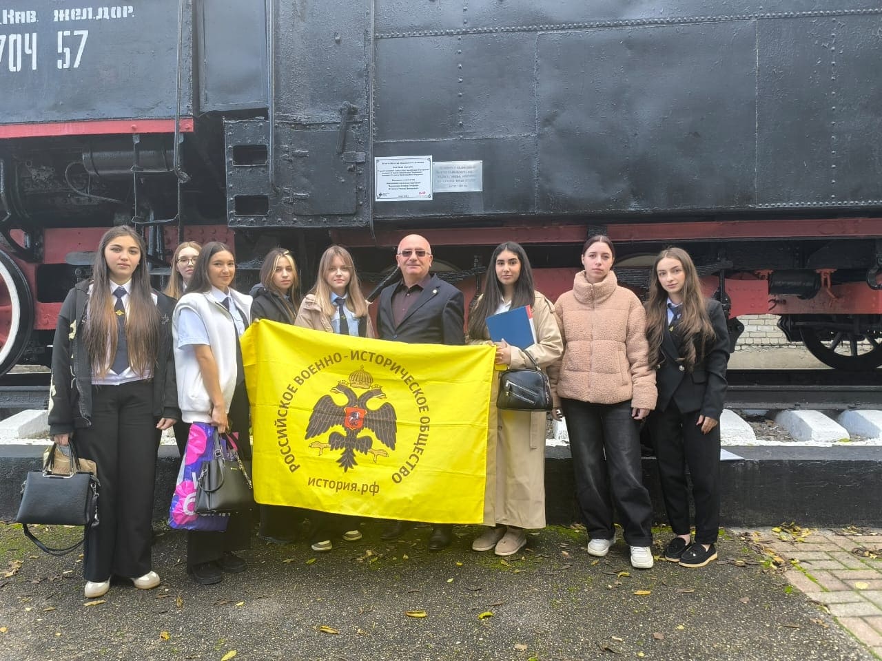 30 октября 2025 года Местное отделение РО РВИО СК в Минераловодском муниципальном округе (РО РВИО СК) и отдел краеведения Центральной городской библиотеки им. Р.Н. Котовской г. Минеральные Воды (зав. отделом – Гаркуша Е.А., член РО РВИО СК) провели патриотическое мероприятие для студентов филиала Ставропольского кооперативного техникума. В рамках мероприятия состоялась встреча с председателем «Терского общества любителей казачьей старины» О. Губенко, который познакомил учащихся с бытом и традициями казачьего общества. Состоялся выезд к паровозу стахановской бригады М.Г. Золотарева, где Акопян М.Б. рассказал студентам о стахановском движении и трудовом подвиге железнодорожников. В честь 90-летия стахановского движения Местное отделение РО РВИО СК в Минераловодском муниципальном округе и ветеранская организация АО «РЖД» установили здесь памятную табличку.