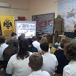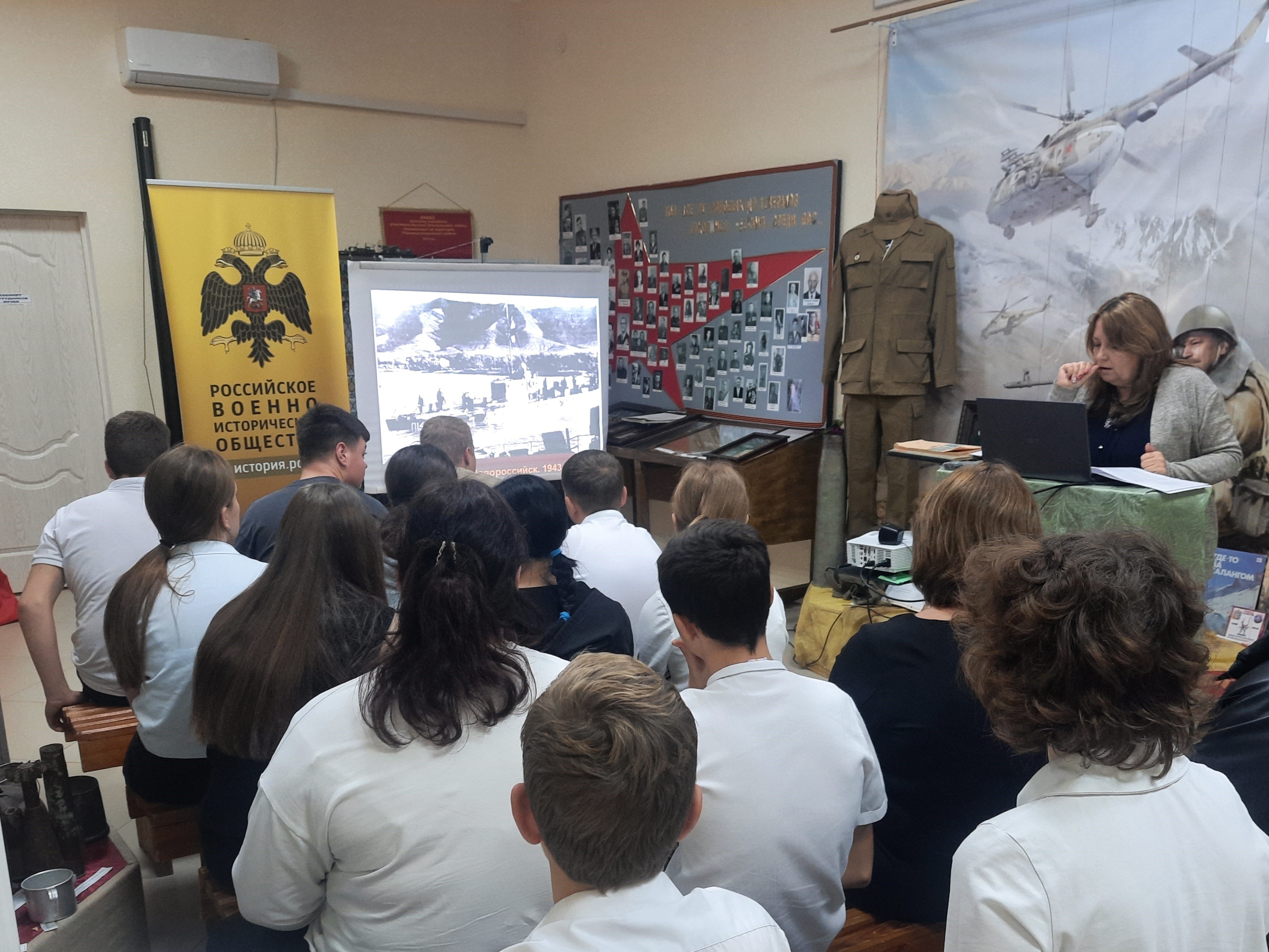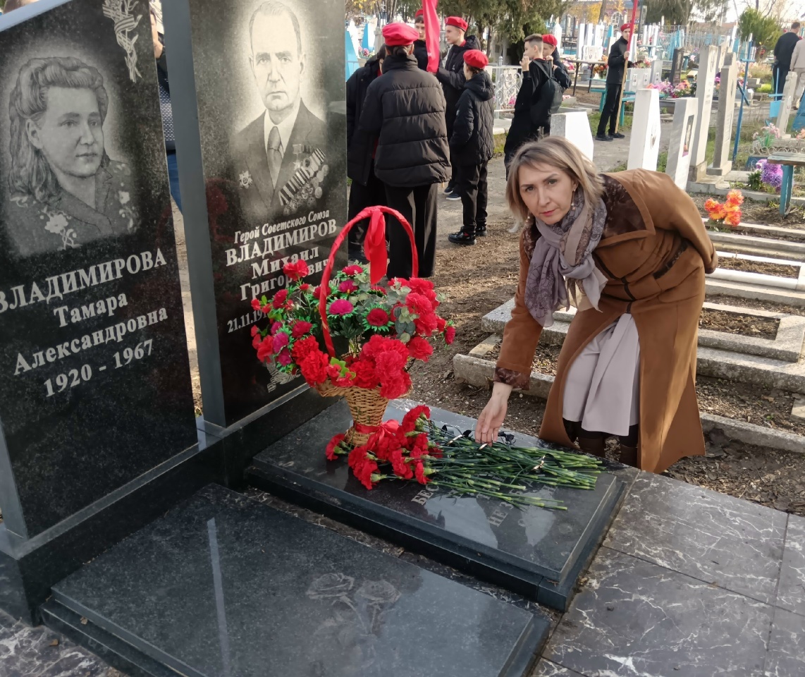 Так, 20 ноября 2025 г. в Новоалександровском районном музее состоялась лекция из цикла «Битва за Кавказ» – «Ставропольцы – Герои Советского Союза», слушателями которой стали учащиеся 9-х классов МОУ СОШ №11 х. Красночервонного и МОУ СОШ №13 пос. Светлого. В ходе мероприятия сотрудники музея Герасимова М.Ф. и Скрипникова Л.А., члены РО РВИО СК, уделили особое внимание рассказу о своём земляке – Владимирове Михаиле Григорьевиче – единственном Герое Советского Союза в Новоалександровском районе. Слушателям также были представлены материалы музейной экспозиции, посвящённой прославленному земляку: продемонстрированы документы, копии высокой награды и наградные листы с описаниями его подвигов, фотографии разных лет из архива музея. 21 ноября 2025 г. эстафету памяти приняли учащиеся 8 класса школы №12 г. Новоалександровска, для которых провели музейный урок, также посвящённый жизни и подвигу М.Г. Владимирова.