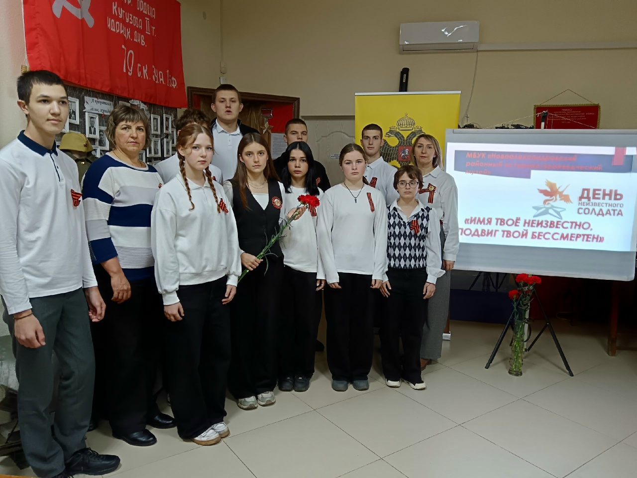 3 декабря 2025 г. в Новоалександровском районном музее для учащихся МОУ СОШ №5 г. Новоалександровска прошёл музейный урок «Имя твоё неизвестно, подвиг твой бессмертен!». Его провели сотрудники музея, члены РО РВИО СК Герасимова М.Ф. и Скрипникова Л.А. Школьникам рассказали об истории памятной даты и показали уникальные материалы о братских и одиночных захоронениях партизан времён Гражданской войны и солдат Великой Отечественной войны на территории района. Урок завершился торжественным возложением цветов к Братской могиле в Городском парке.