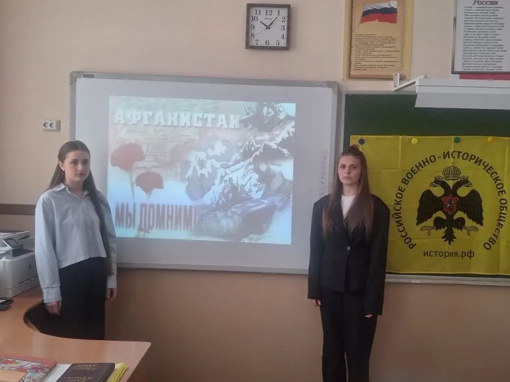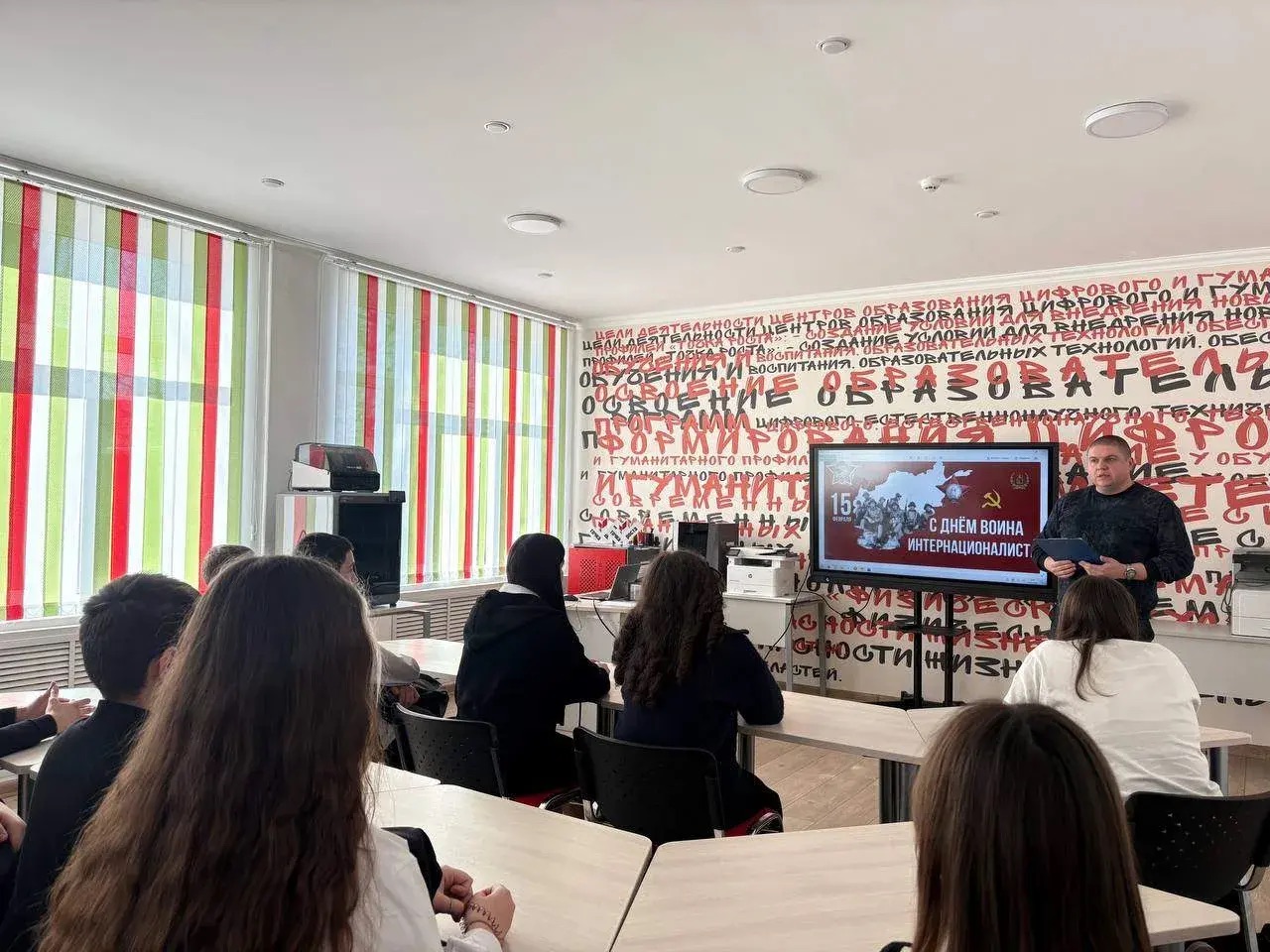 13 февраля 2026 г. в МБОУ гимназии №2 г. Георгиевска для учащихся 9 и 11 классов Алексина Е.Ю., учитель истории и обществознания, председатель Местного отделения РО РВИО СК в Георгиевском муниципальном округе, провела цикл мероприятий, посвящённых годовщине вывода Ограниченного контингента советских войск (ОКСВ) из Афганистана. В рамках Уроков памяти старшеклассники рассказали о героях Афганской войны, обсудили документальный фильм, познакомились с творчеством воинов-интернационалистов.