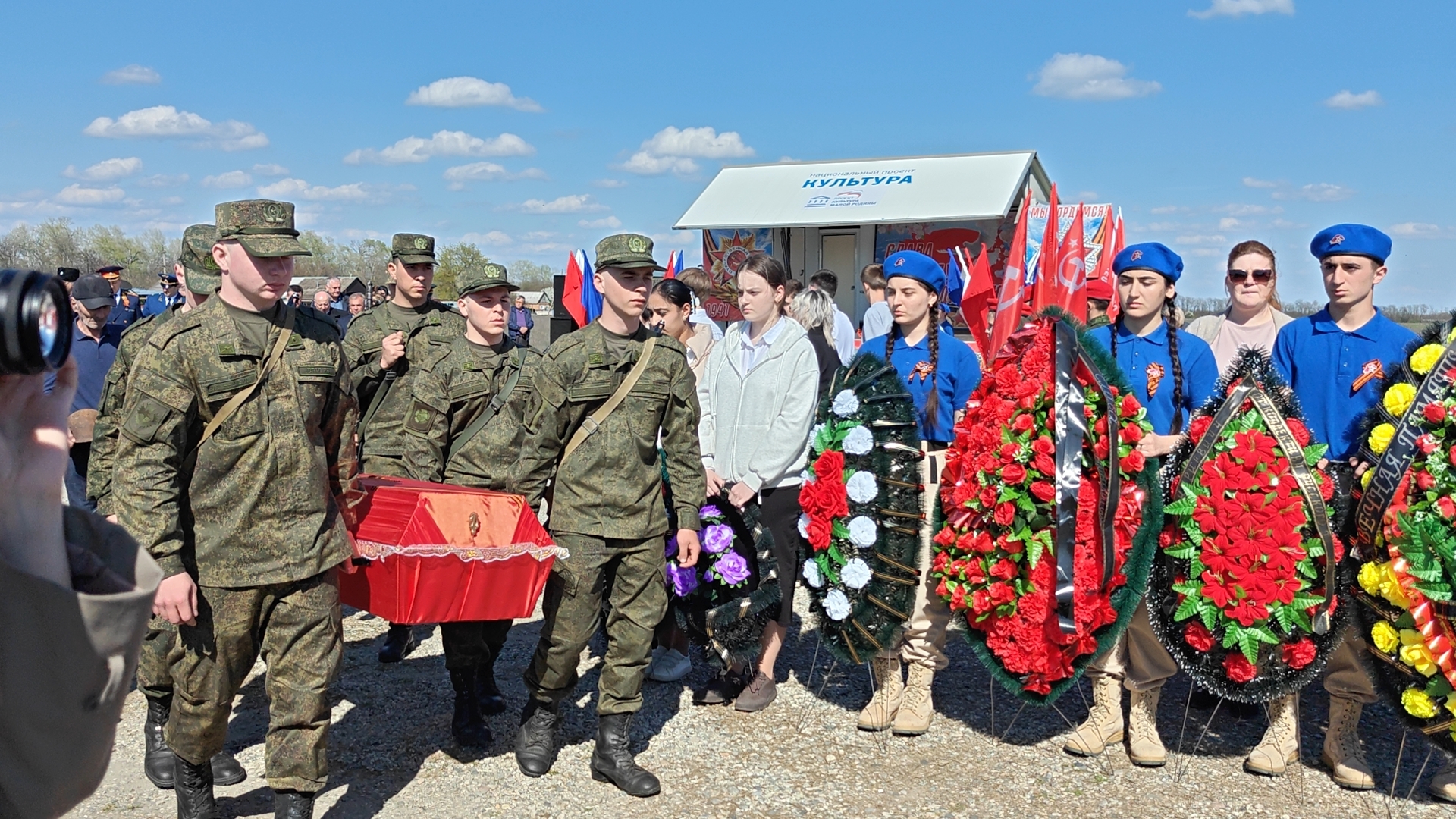 17 апреля 2026 г. в с. Русском Курского муниципального округа состоялась торжественная церемония захоронения останков красноармейца Швецова Андрея Дмитриевича, павшего в годы Великой Отечественной войны. Спустя 85 лет боец вернулся на свою Малую Родину.