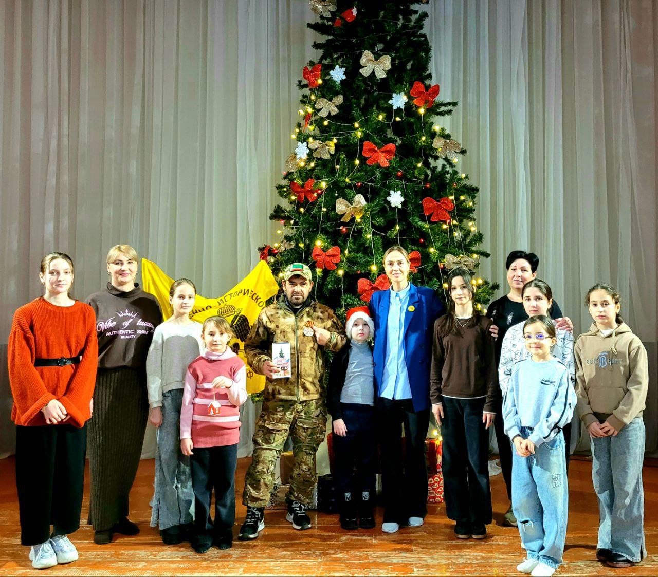 Также в преддверии Нового года Мирненский сельский Дом культуры и активисты Местного отделения РО РВИО СК в Курском муниципальном округе провели поздравительную акцию в поддержку военнослужащих, принимающих участие в Специальной военной операции. Для юных патриотов была организована встреча с земляком-участником СВО Бесланом Мажидовым. Ребята вручили гостю талисман добра и новогодние открытки со словами благодарности, символизирующие единство и веру.