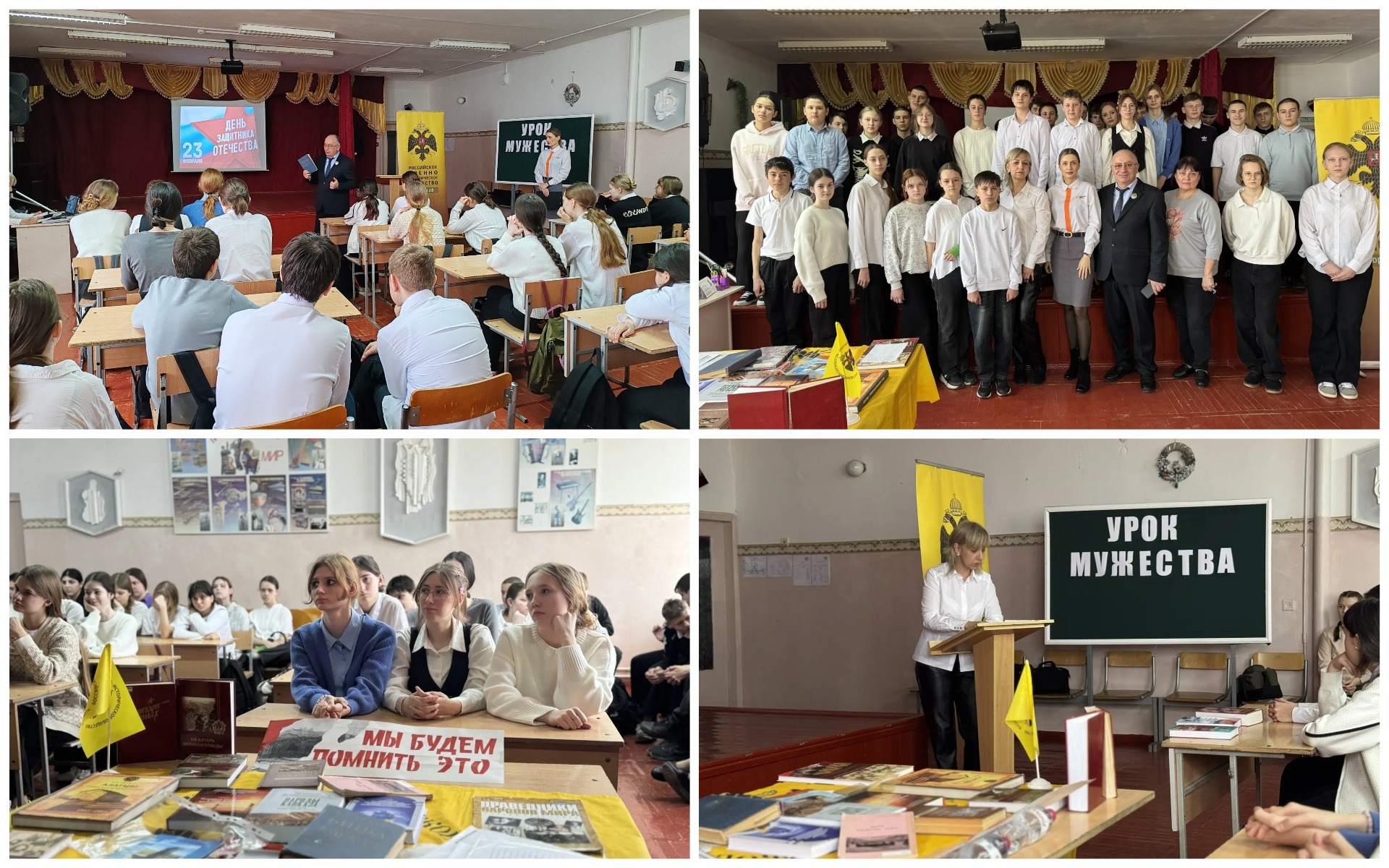 В преддверии Дня защитника Отечества председатель Местного отделения РО РВИО СК в Минераловодском муниципальном округе Акопян М.Б. провел урок мужества для учащихся МБОУ СОШ №7. В ходе разговора особое внимание было уделено боям 140-й танковой бригады. Учащихся также познакомили с боевым путем Героя Советского Союза Сундиева И.С., которому на фасаде школы установлена мемориальная доска РВИО в рамках проекта «Школа Героя».
