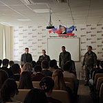 Член Ставропольского регионального отделения Российского военно-исторического общества (РО РВИО СК) Сухомлинов С.А., заместитель руководителя отдела по противодействию терроризму и взаимодействию с правоохранительными органами Комитета общественной безопасности администрации г. Ставрополя, ветеран боевых действий, полковник запаса, продолжает принимать участие в информационно-разъяснительной работе с учащейся молодёжью Ставрополя. На этот раз, 12 марта 2026 г., состоялась встреча со студентами Ставропольского филиала Российской академии народного хозяйства и государственной службы при Президенте Российской Федерации (РАНХиГС). Главной темой обсуждения стали возможности прохождения военной службы по контракту и перспективы, открывающиеся перед молодыми людьми в новейшем роде войск – Войсках беспилотных систем ВС РФ. Студентам подробно разъяснили порядок заключения контракта, критерии отбора кандидатов, а также широкий спектр социальных гарантий и мер государственной поддержки, предоставляемых военнослужащим.