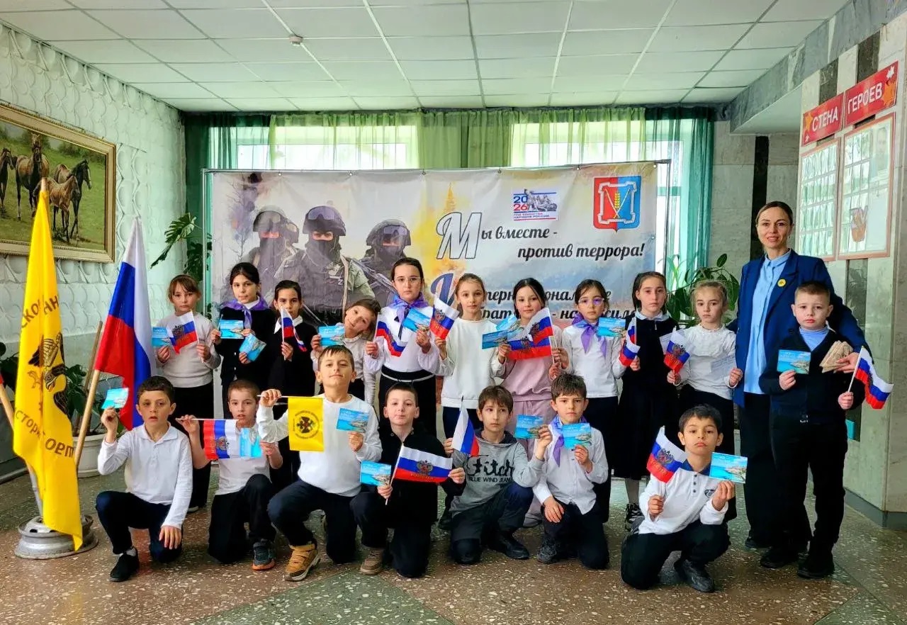 В этот же день учащиеся 8–9-х классов МКОУ СОШ №5 с. Сергиевского (директор О.А. Гоноченко, член РО РВИО СК) присоединились к Всероссийской просветительской акции «Россия – семья семей», приуроченной к Году единства народов России. Ребята написали тематический диктант, посвящённый русскому языку как языку межнационального общения и фундаменту, скрепляющему многонациональную страну.