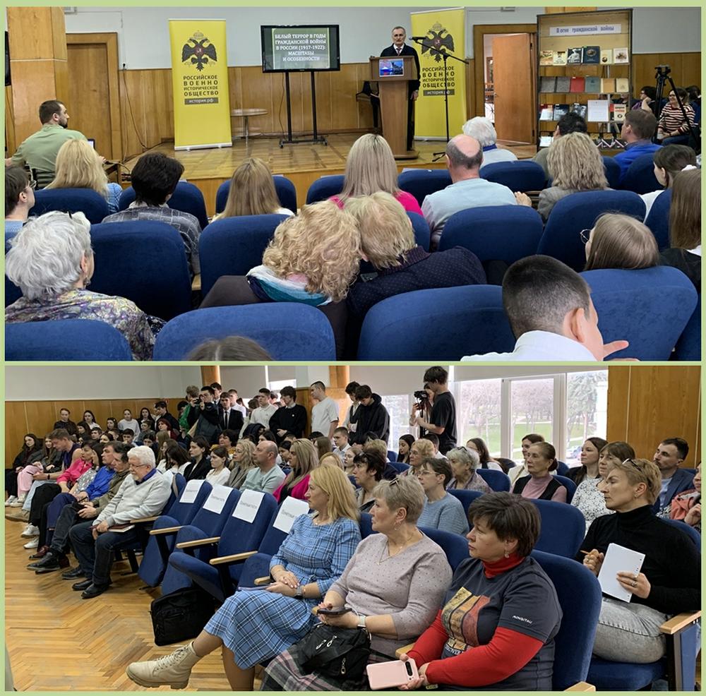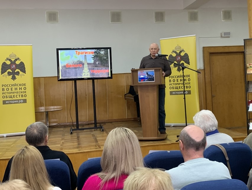 На встречу были приглашены молодёжь и школьники города, а также все любители истории. Открыл мероприятие директор Централизованной библиотечной системы г. Пятигорска Бандурин В.Б., член РО РВИО СК. Участники обсудили трагические события Гражданской войны, действия руководителей Белого движения и историю развязанного на Кавказских Минеральных Водах в этот период террора. Содержательные доклады на эту тему представили: Линец С.И., д.и.н., профессор, профессор кафедры исторических и социально-философских дисциплин Пятигорского государственного университета, член РО РВИО СК; Савенко С.Н., к.и.н., заведующий сектором природы и археологии Пятигорского краеведческого музея, Заслуженный работник культуры Российской Федерации, член Русского географического общества, член РО РВИО СК; Антон Туаев, студент филиала Ставропольского государственного педагогического института в г. Железноводске.