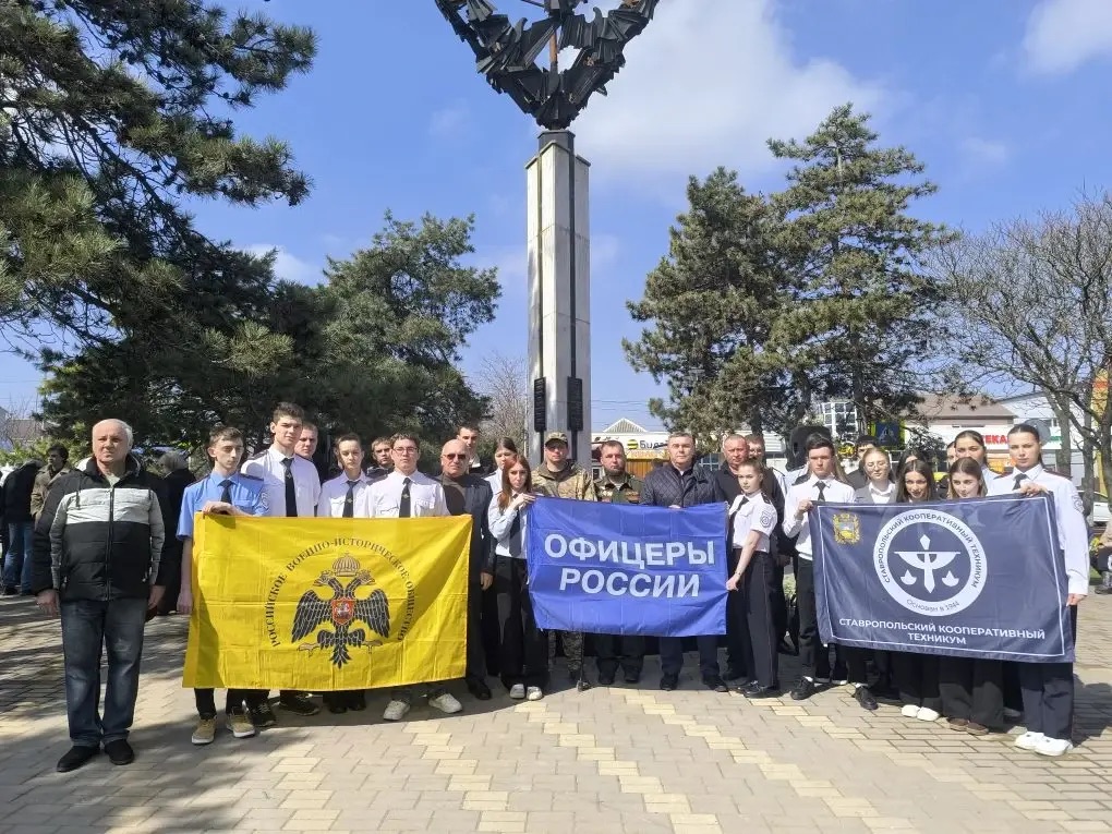 24 марта 2026 г. в Минераловодском муниципальном округе прошли траурные мероприятия, посвящённые 25-й годовщине со дня террористического акта в г. Минеральные Воды. Председатель Местного отделения РО РВИО СК в Минераловодском муниципальном округе Акопян М.Б. совместно со студентами филиала Ставропольского кооперативного техникума принял участие в траурном митинге у мемориала погибшим землякам. В память о жертвах теракта студенты и участники митинга возложили траурные венки, отдав дань уважения памяти погибших.