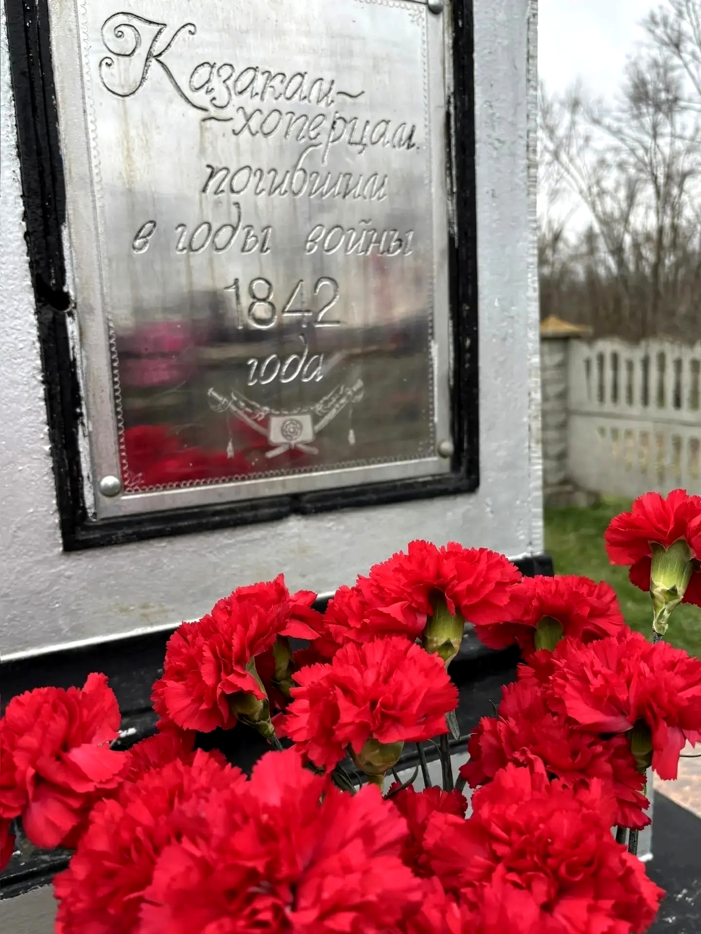 28 марта 2026 г. в ст. Беломечëтской Кочубеевского округа состоялось траурное мероприятие, посвящённое памяти казаков-хопёрцев, павших в неравном бою с горцами 29 марта 1842 г. Участники военно-патриотического клуба «Казачок» МКОУ СОШ №7 (директор – Волосовцева Е.А., член Местного отделения РО РВИО СК в Кочубеевском муниципальном округе (председатель – Котов С.Н.)), активисты Волонтёрской роты «Боевого братства» ст. Беломечётской совместно с сотрудниками историко-краеведческого музея, Дома культуры, священником Дмитрием Лариным и представителями казачества собрались у мемориала, чтобы почтить память земляков. Сотрудники музея рассказали о трагических страницах истории времён Кавказской войны. В ходе мероприятия с речью выступили атаман местного казачьего общества Усачёв А.В. и Землянская М.И., потомок погибшего казака Сидора Мельникова, похороненного в братской могиле. Память станичников почтили минутой молчания, а к подножию старейшего на Ставрополье мемориала, посвящённого Кавказской войне (1817–1864), возложили цветы.
