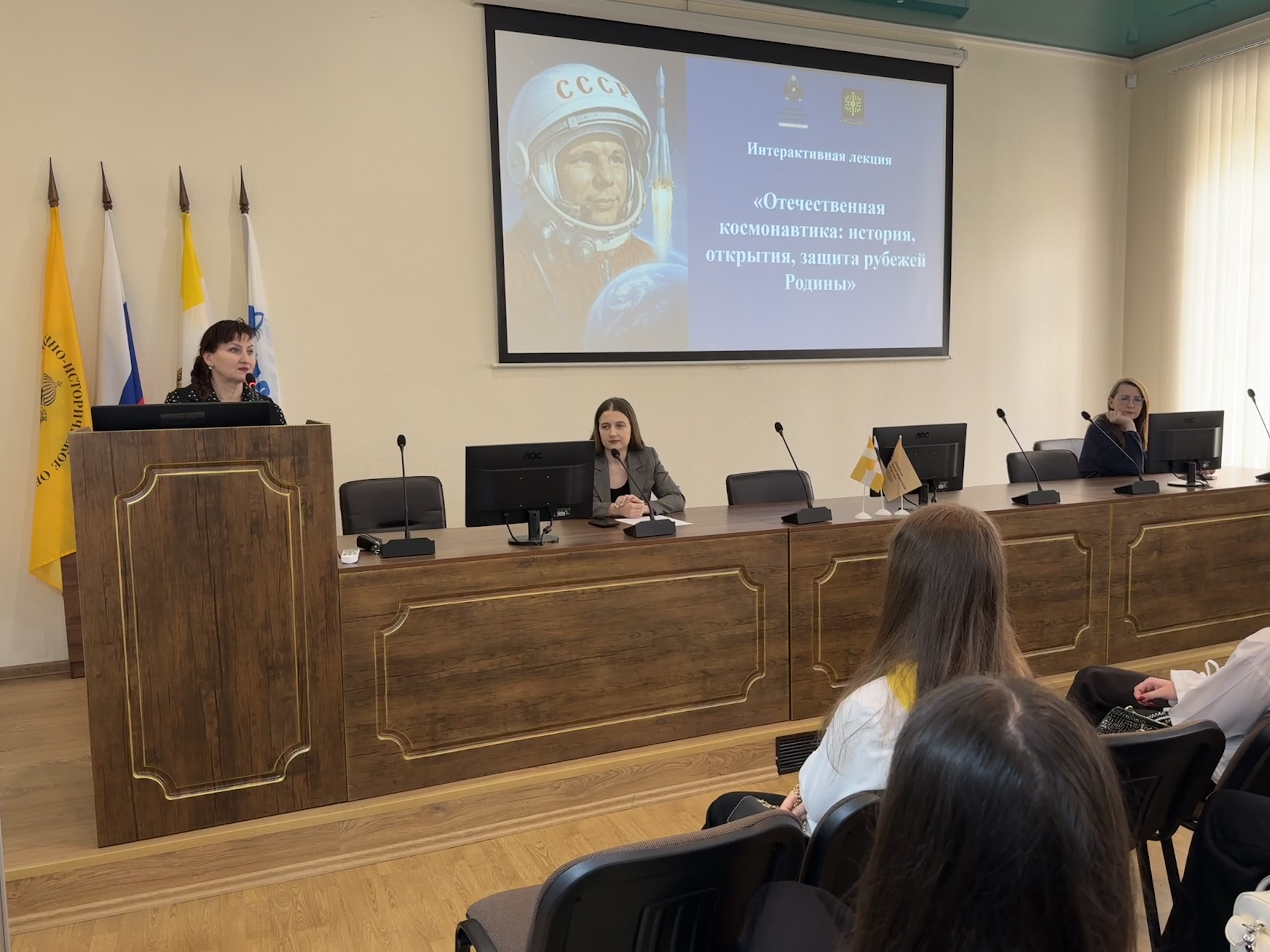 В 2026 г. отмечается целая серия юбилейных дат, связанных с освоением космического пространства: 80 лет назад была создана ракетная отрасль, 65 лет назад состоялся первый полёт человека в космос, а 25 лет назад были созданы Космические войска. 8 апреля 2026 г., в преддверии Дня космонавтики, в конференц-зале Ставропольского регионального отделения Российского военно-исторического общества (РО РВИО СК) прошла интерактивная лекция «Отечественная космонавтика: история, открытия, защита рубежей Родины».