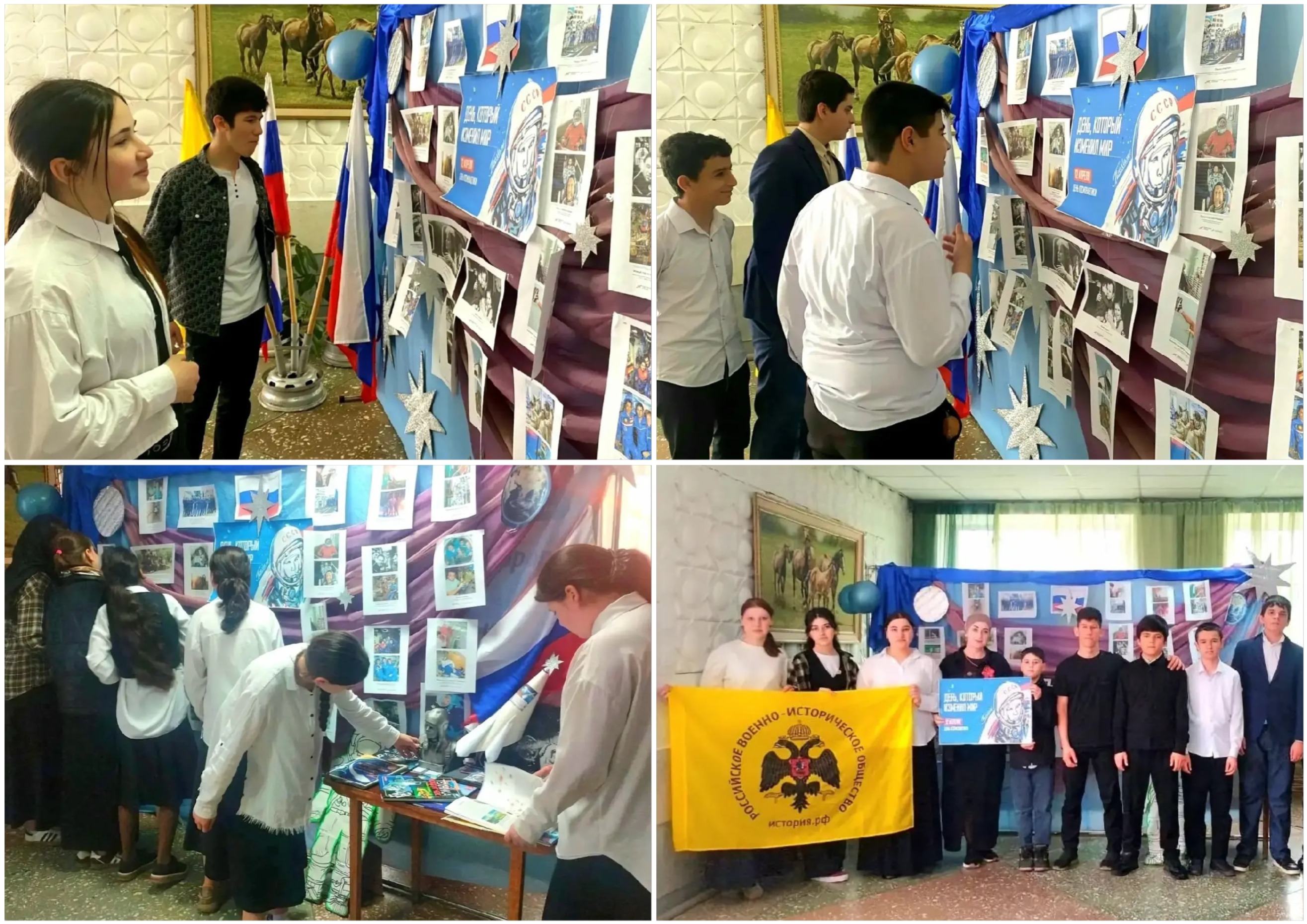 В рамках Недели космоса в Мирненском доме культуры для молодого поколения жителей посёлка руководитель кружка «Арт Креация», член РО РВИО СК Магомедова С.А. организовала фотовыставку «От Гагарина до тебя». Цель выставки – показать историю освоения космоса через призму человеческих историй, а не только героических достижений. В центре внимания – то, что обычно остаётся за пределами публичного образа космонавтики: годы подготовки, изнурительные тренировки, испытания техники, повседневная жизнь экспедиций, редкие минуты отдыха. Выставка демонстрировала не только официальные события, но и личные моменты: эмоции перед стартом, радость после приземления, общение с родными.