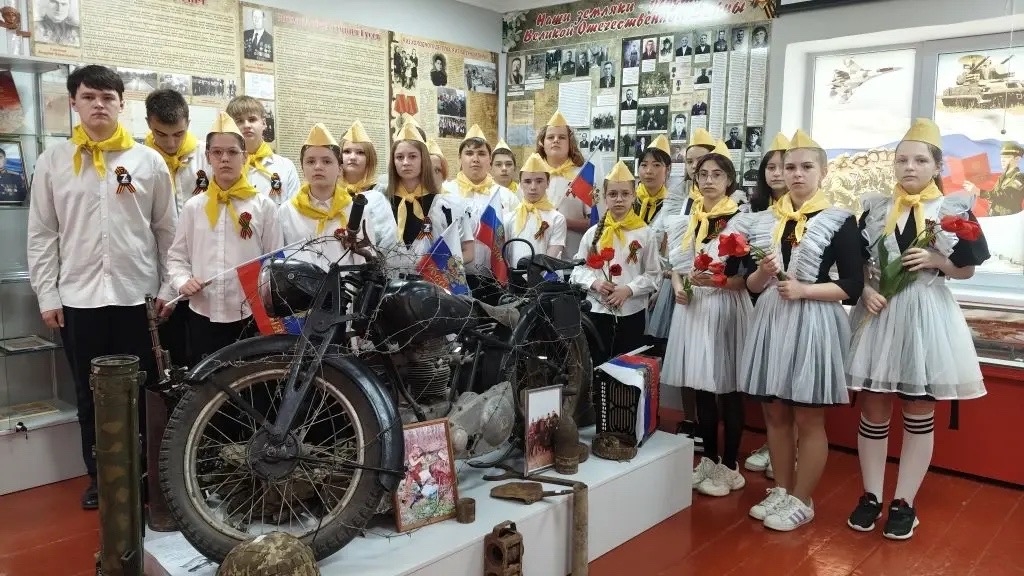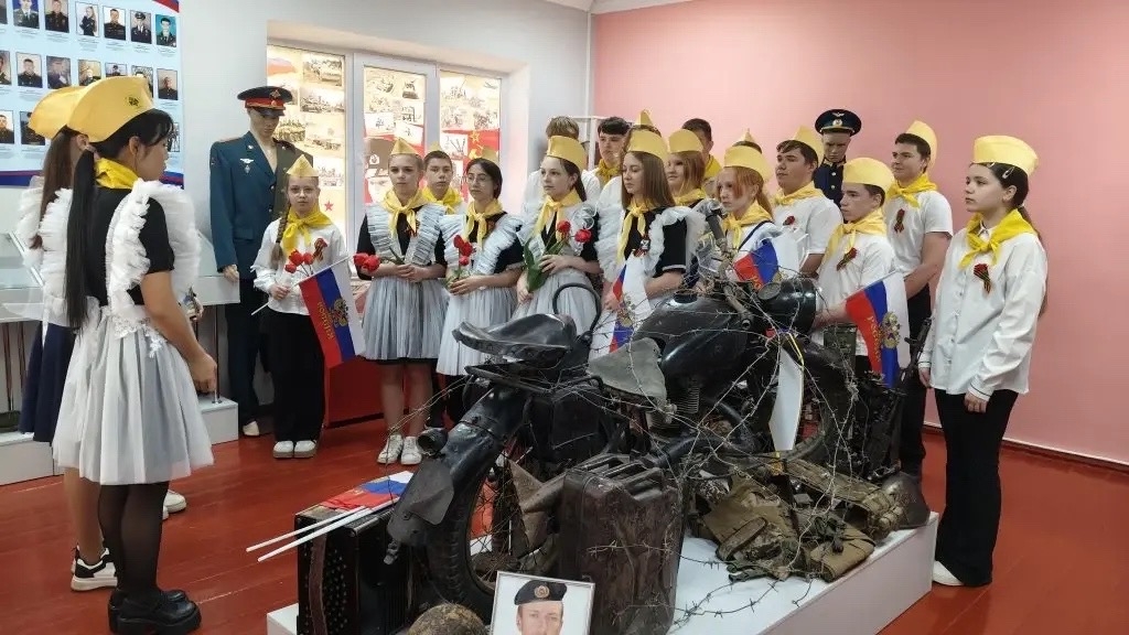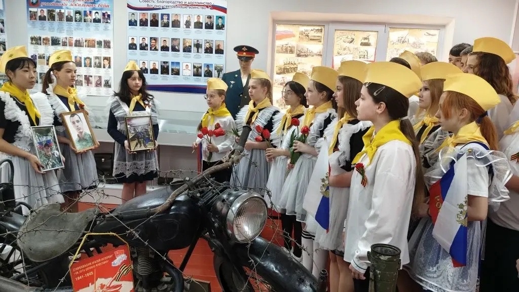 16 апреля 2026 г. в историко-краеведческом музее «Истоки» №7315 им. М.Ф. Гусева (руководитель – Мирошниченко Т.Н., член Местного отделения РО РВИО СК в Изобильненском муниципальном округе (председатель – Щендригин Н.И.)) для старшеклассников МБОУ СОШ №8 им. А.В. Грязнова с. Тищенского (директор – Князева С.С., член РО РВИО СК) прошла экскурсия, посвящённая землякам, погибшим при исполнении воинского долга в зоне Специальной военной операции. Экскурсоводы рассказали школьникам о Юрии Байрамукове, Олеге Киндюкове и Антоне Елсукове, которые посмертно награждены орденом Мужества. Ребята с большим вниманием слушали истории о героях и почтили их память минутой молчания.