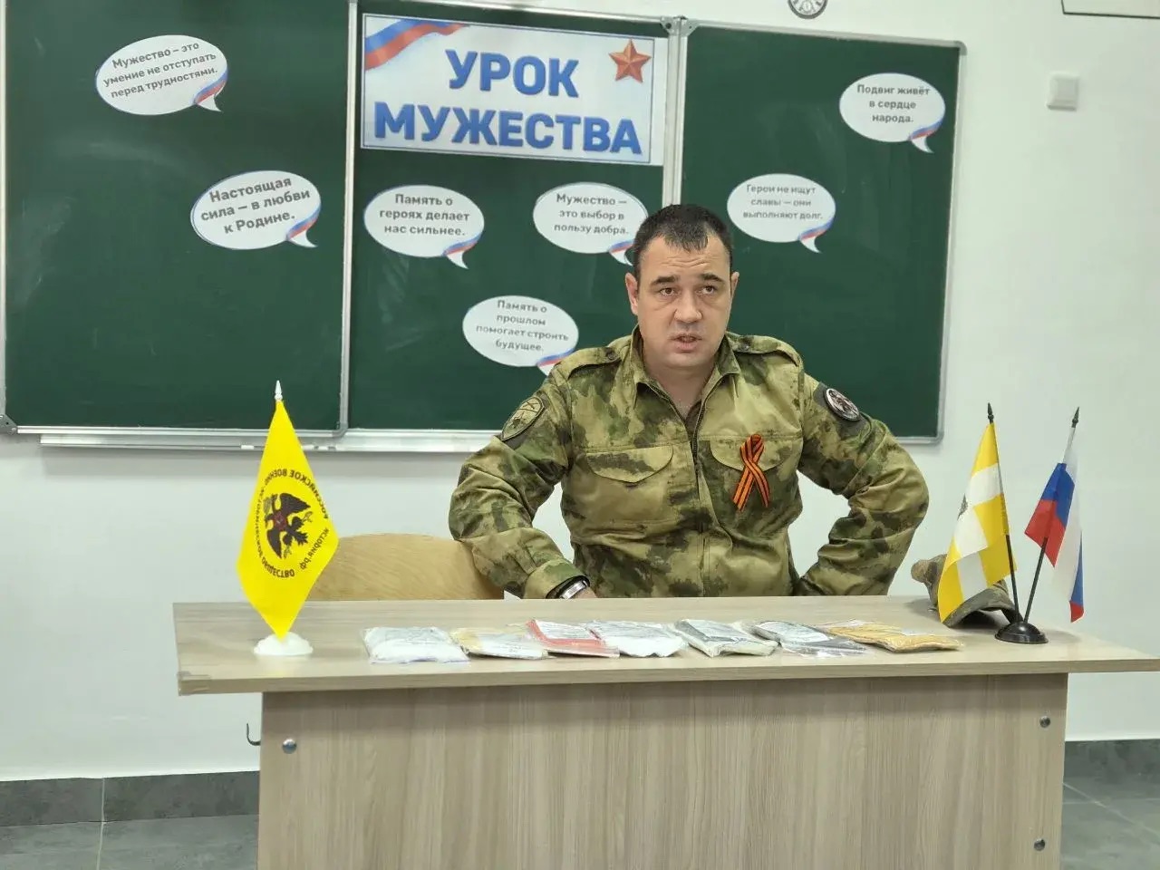 20 апреля 2026 г. в Школе-интернате с. Русского состоялся «Урок мужества» с младшим сержантом Росгвардии Сваловым И.А., участником Специальной военной операции. Мероприятие было организовано учителем истории и обществознания Коломиец М.В., членом РО РВИО СК. Иван Александрович поделился с воспитанниками школы личным опытом, рассказал о боевых буднях, о значении патриотизма и важности готовности встать на защиту Отечества. Его искренний рассказ о фронтовых товарищах, взаимовыручке и моральном духе тронул юные сердца. Школьники узнали о навыках, необходимых для защитника Родины, и получили ответы на все интересующие вопросы. Встреча вдохновила ребят на активное участие в жизни общества и на защиту своих ценностей.