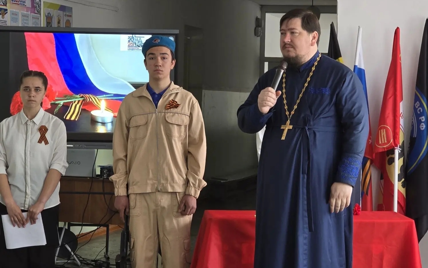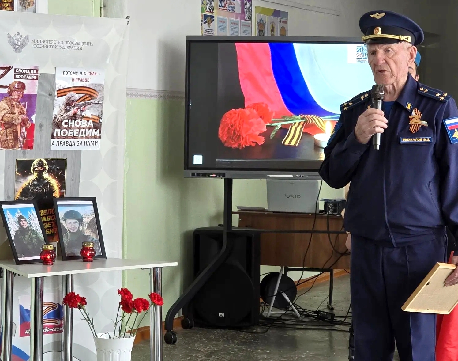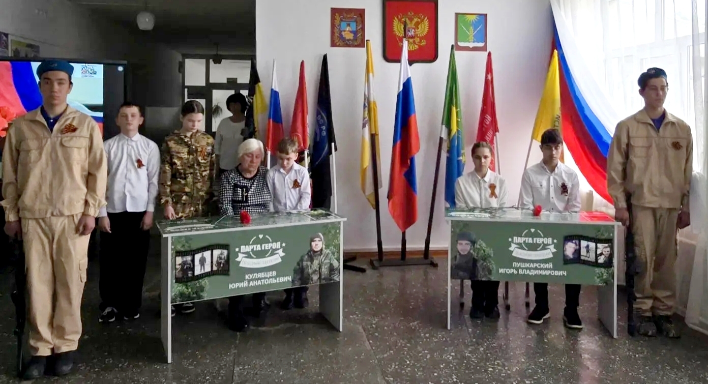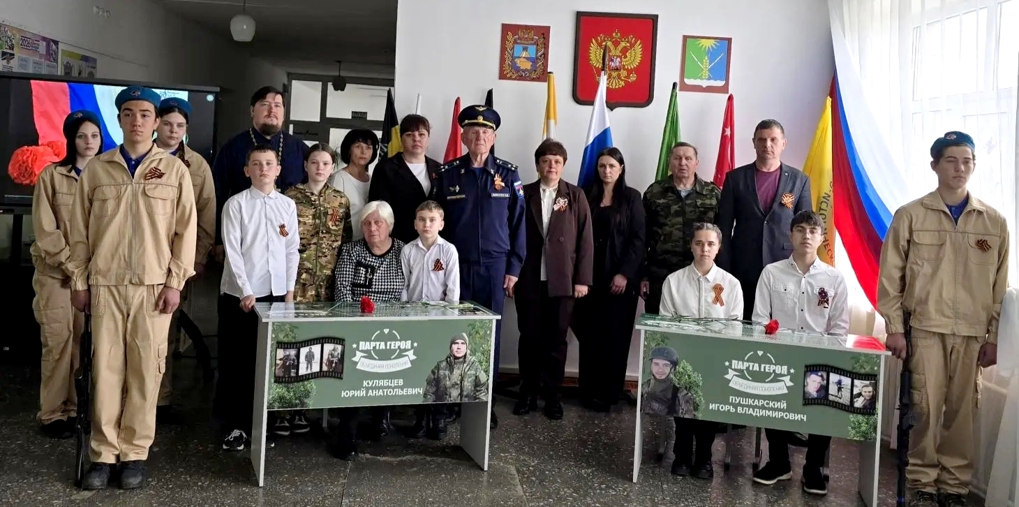 Так, например, 27 апреля 2026 г. в МКОУ СОШ №7 ст. Беломечётской (директор – Волосовцева Е.А., член Местного отделения РО РВИО СК в Кочубеевском муниципальном округе (председатель – Котов С.Н.)) было открыто сразу две «Парты Героя» – в честь выпускников школы, погибших участников Специальной военной операции Юрия Кулябцева и Игоря Пушкарского. В торжественной церемонии приняли участие учащиеся и педагоги школы, родители, а также почётные гости – представители администрации, ветераны боевых действий, близкие Юрия и Игоря, представители духовенства, члены РО РВИО СК. Звучали слова благодарности, воспоминания о героях, подчёркивалась важность сохранения памяти о них. «Парты Героя» станут для учеников школы не просто памятными знаками, а источником вдохновения. Глядя на них, ребята будут помнить: мужество, верность долгу и любовь к Родине – это не абстрактные понятия, а качества, которые проявляли реальные люди. И каждый из нас может стать лучше, достойнее, сильнее просто следуя их примеру.